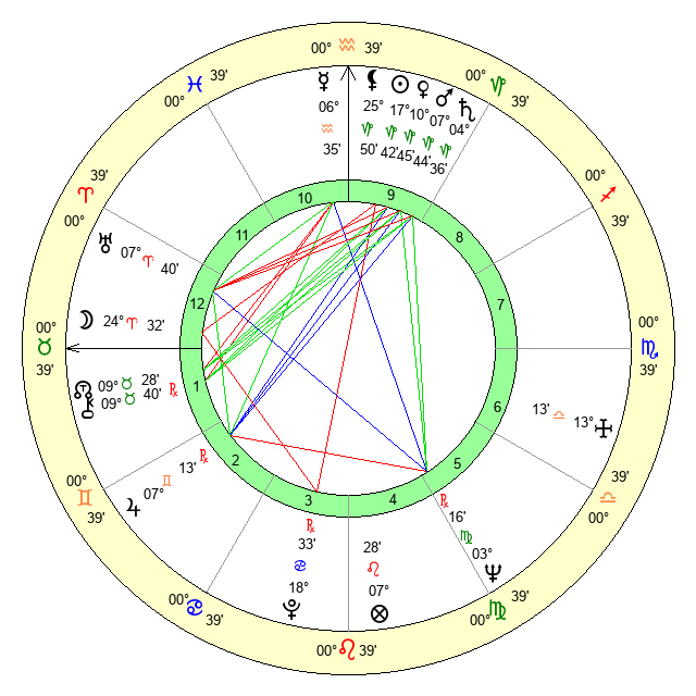 | Moon | 24 Aries 36 | 11 Taurus 11 | 28 Libra 57 |
