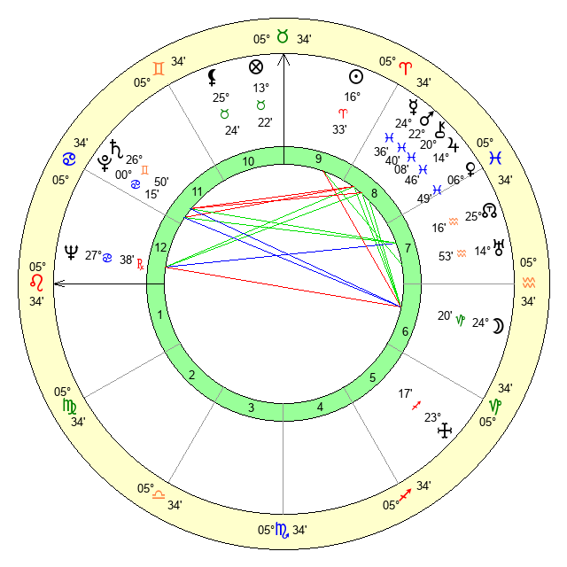 | Sun | 16 Aries 33 | 17 Aries 53 | 2 Leo 22 |