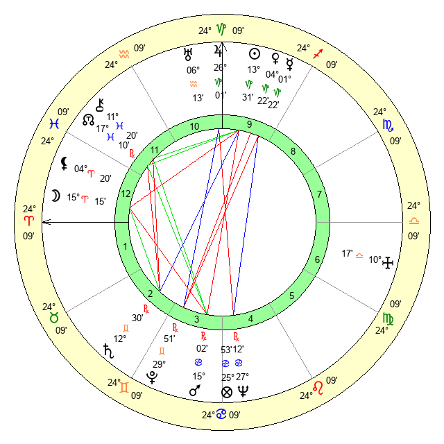 | Moon | 15 Aries 13 | 1 Leo 55 | 19 Taurus 13 |
