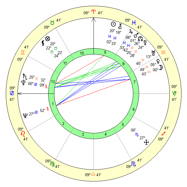 | Sun | 20 Pisces 3 | 21 Pisces 22 | 6 Cancer 51 |