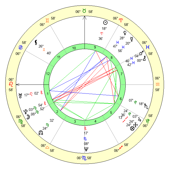 | Moon | 5 Virgo 50 | 28 Leo 36 | 2 Aquarius 46 |
