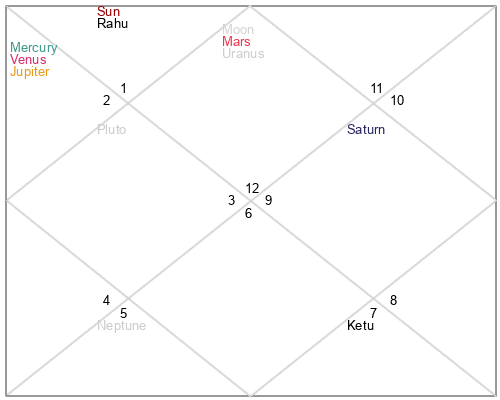 | Venus | 25 Taurus 2 | 27 Pisces 51 | 18 Virgo 7 |