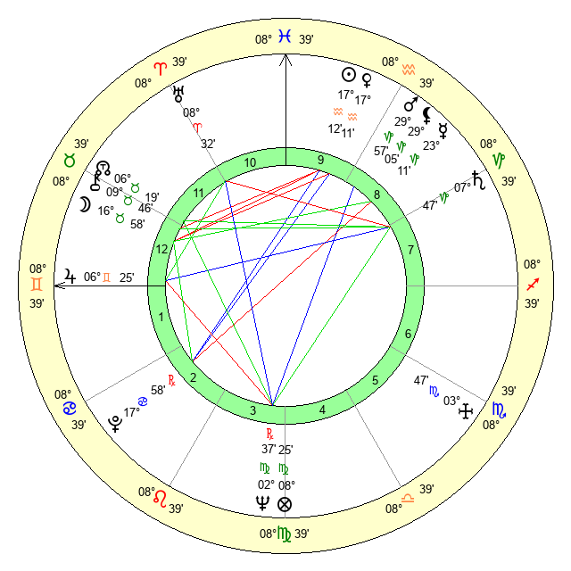 | Sun | 17 Aquarius 12 | 18 Aquarius 9 | 21 Taurus 14 |