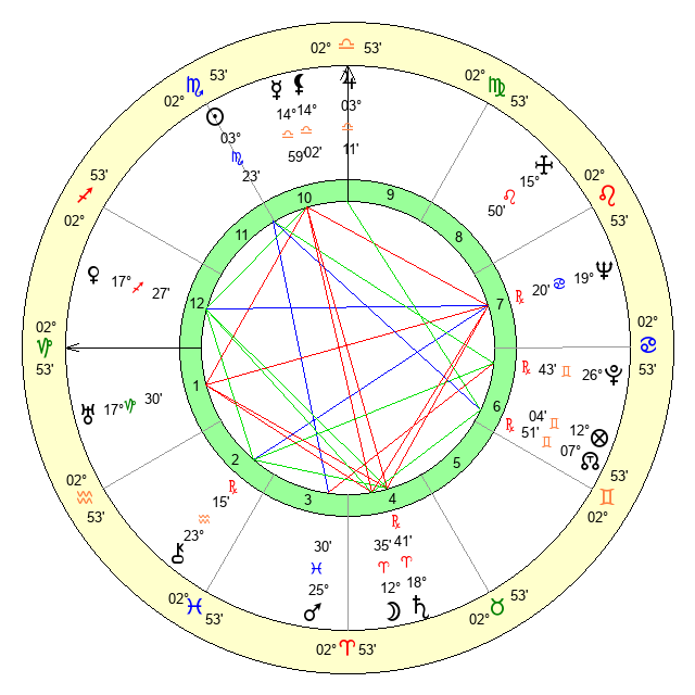 | Moon | 12 Aries 37 | 9 Virgo 36 | 3 Cancer 55 |