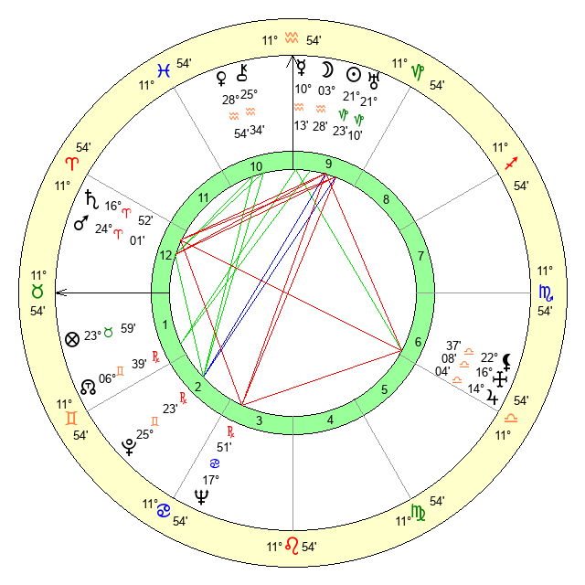 | Venus | 28 Aquarius 54 | 9 Pisces 38 | 0 Aries 23 |