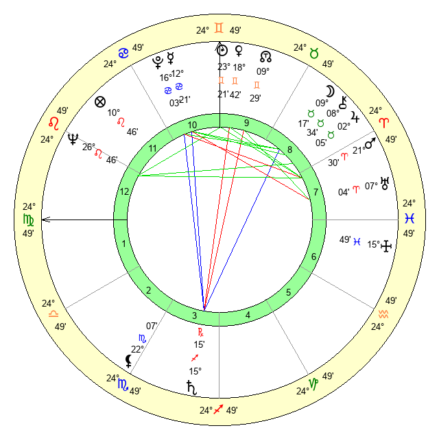 | Sun | 23 Gemini 21 | 23 Gemini 53 | 26 Virgo 29 |