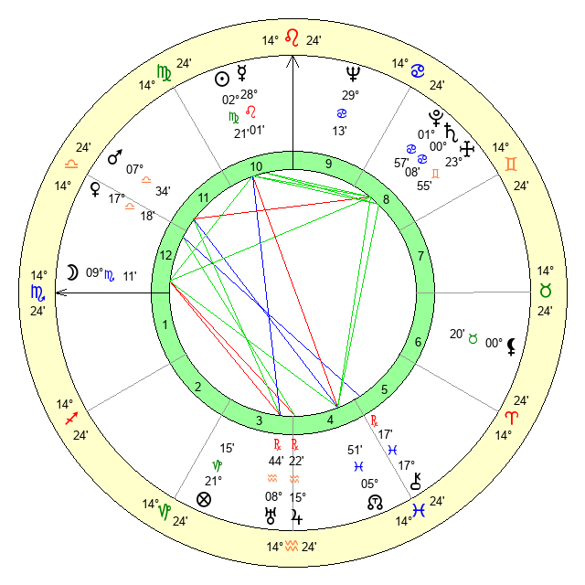 | Moon | 9 Scorpio 9 | 10 Libra 41 | 29 Scorpio 43 |