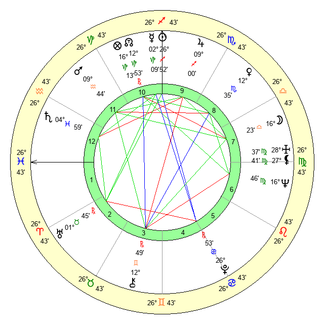 | Neptune | 16 Virgo 46 | 29 Pisces 23 | 15 Virgo 2 |