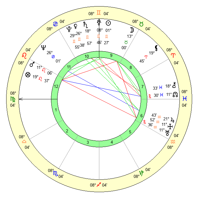| Sun | 1 Gemini 27 | 2 Gemini 34 | 17 Virgo 51 |