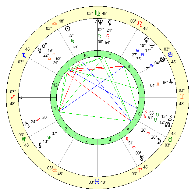 | Neptune | 2 Virgo 8 | 0 Aries 48 | 3 Virgo 29 |