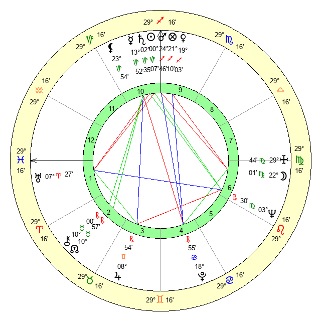 | Neptune | 3 Virgo 31 | 27 Pisces 11 | 1 Virgo 20 |