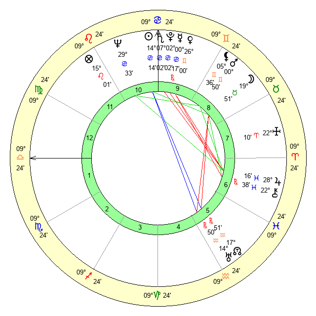 | Mars | 0 Gemini 50 | 11 Virgo 32 | 9 Leo 17 |