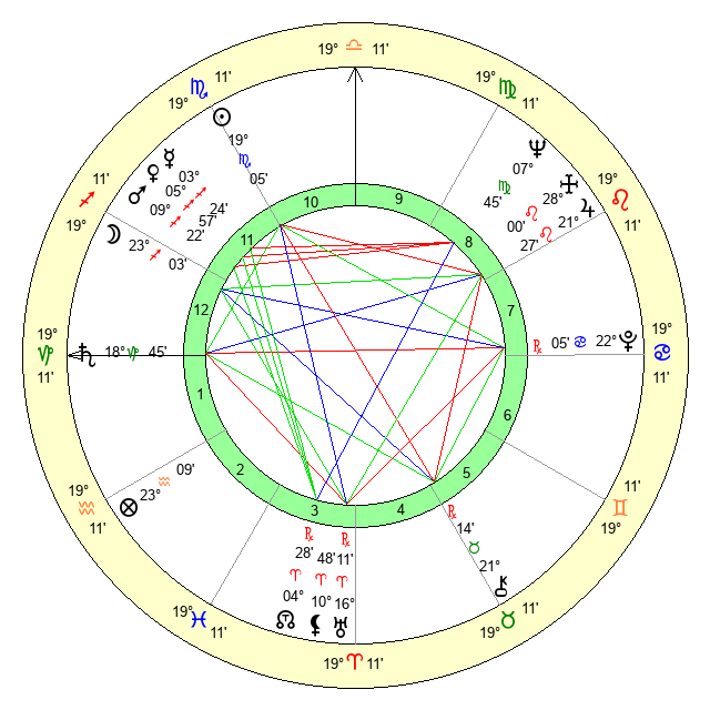 | Neptune | 7 Virgo 45 | 29 Pisces 34 | 6 Virgo 56 |