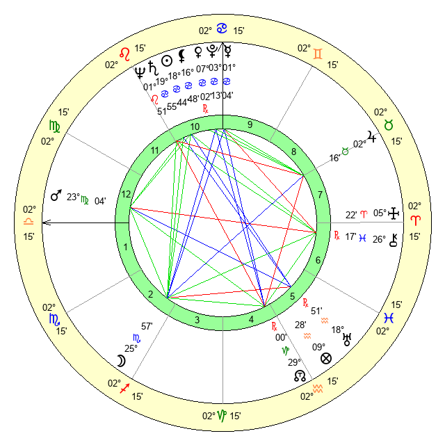 | Sun | 18 Cancer 44 | 19 Cancer 22 | 4 Scorpio 39 |