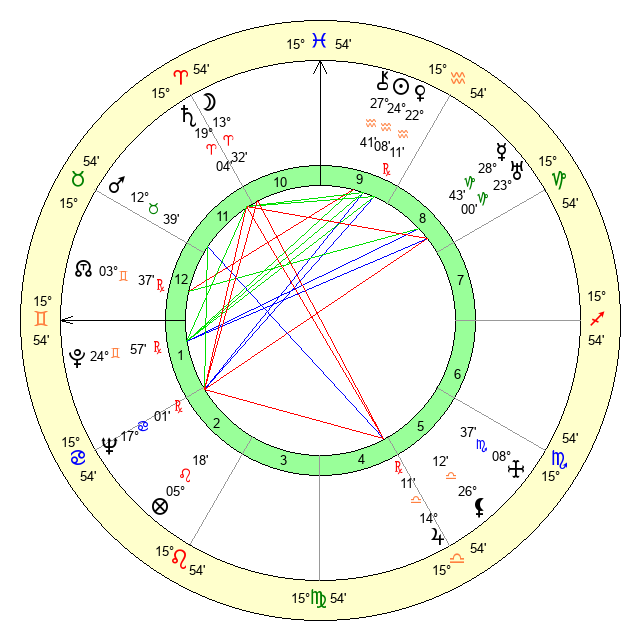 | Moon | 13 Aries 26 | 8 Virgo 8 | 2 Cancer 54 |