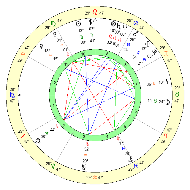 | Sun | 13 Virgo 30 | 14 Virgo 21 | 1 Capricorn 19 |