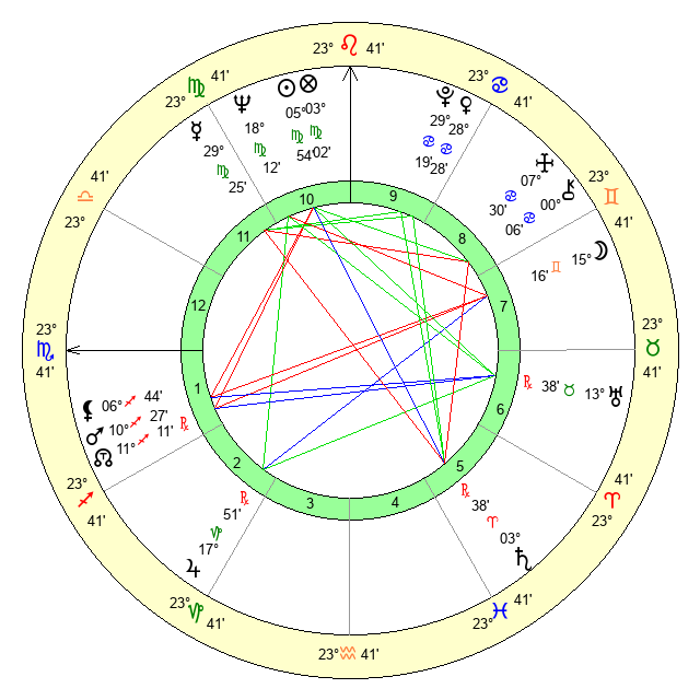 | Sun | 5 Virgo 54 | 6 Virgo 36 | 3 Sagittarius 1 |