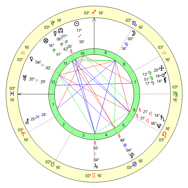 | Mars | 18 Virgo 51 | 6 Leo 6 | 19 Virgo 16 |