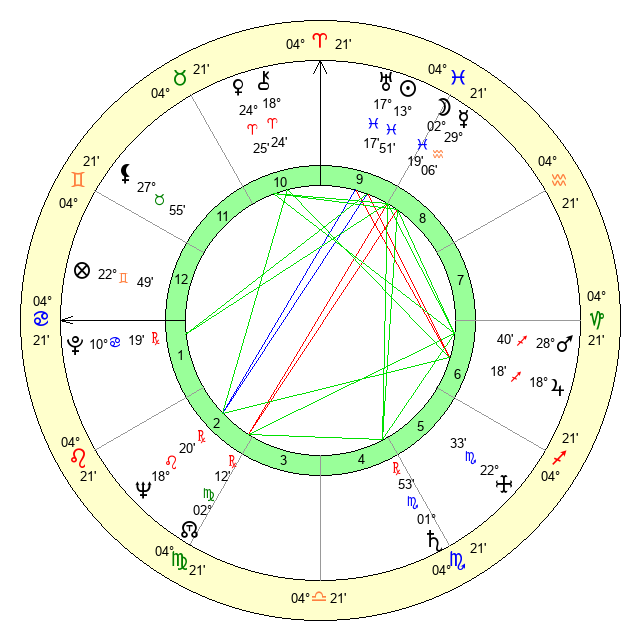 | Saturn | 2 Scorpio 31 | 21 Pisces 4 | 26 Libra 26 |