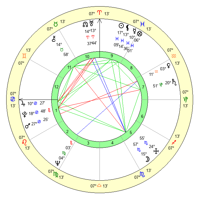 | Moon | 15 Scorpio 53 | 13 Cancer 43 | 15 Aries 22 |