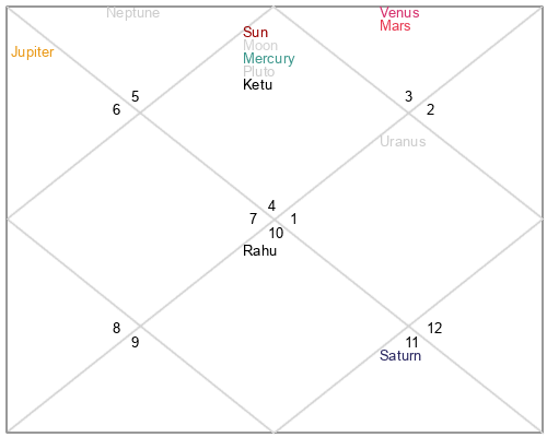 | Rahu | 9 Aquarius 56 | 19 Pisces 51 | 5 Aquarius 7 |