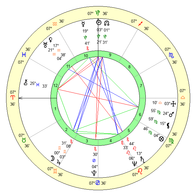 | Mars | 24 Virgo 55 | 3 Leo 46 | 15 Virgo 7 |