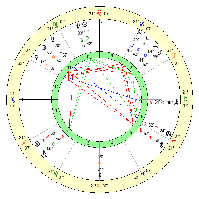 | Sun | 2 Virgo 43 | 3 Virgo 42 | 6 Sagittarius 46 |