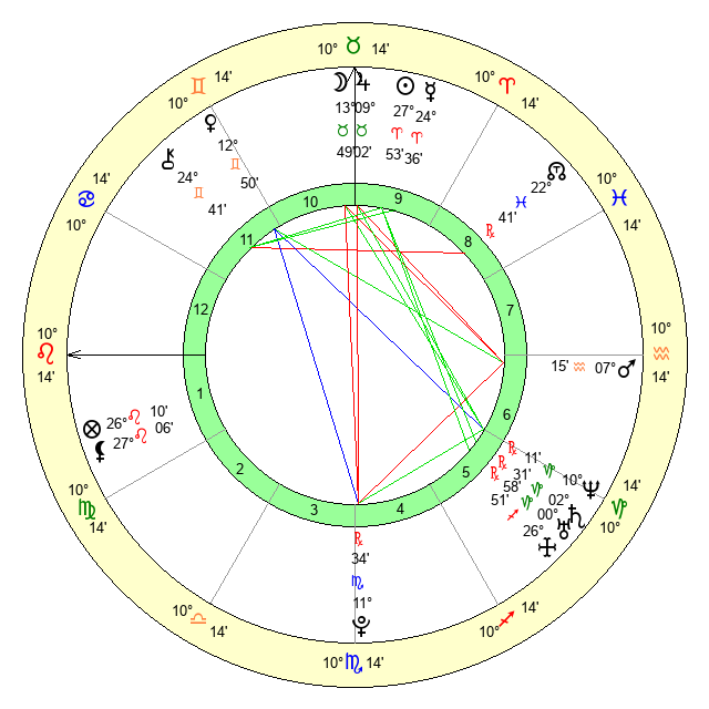 | Sun | 27 Aries 53 | 27 Aries 56 | 3 Gemini 43 |