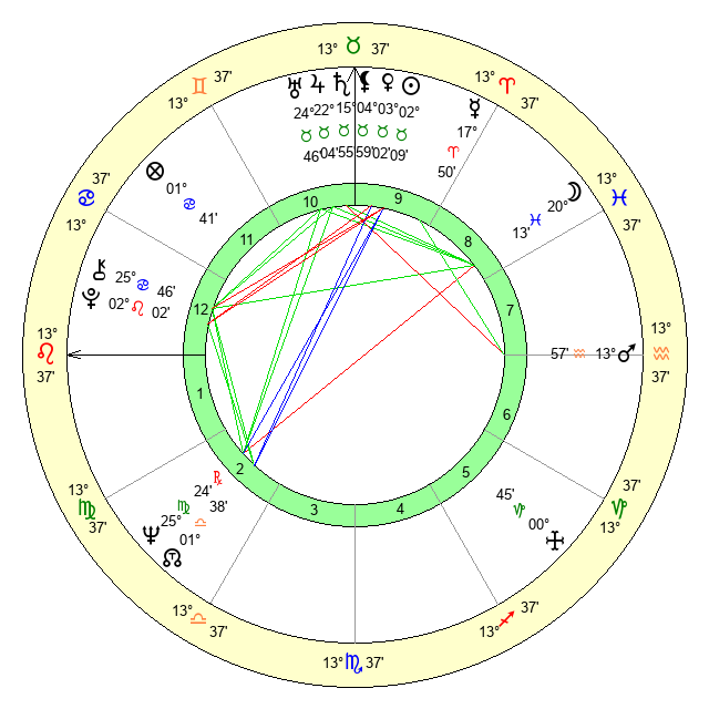 | Neptune | 25 Virgo 24 | 0 Aries 49 | 25 Virgo 20 |