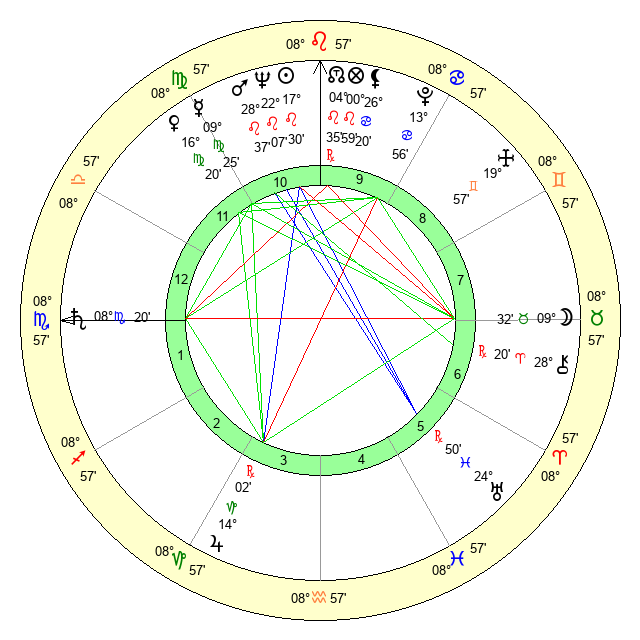 | Mars | 28 Leo 38 | 2 Libra 20 | 3 Scorpio 25 |