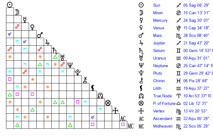 Mercury | 24 Sagittarius 30 | 22 Sagittarius 27 | 11 Aries 51 |