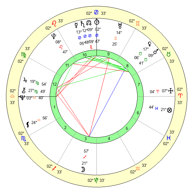 | Sun | 2 Cancer 47 | 3 Cancer 26 | 19 Virgo 33 |