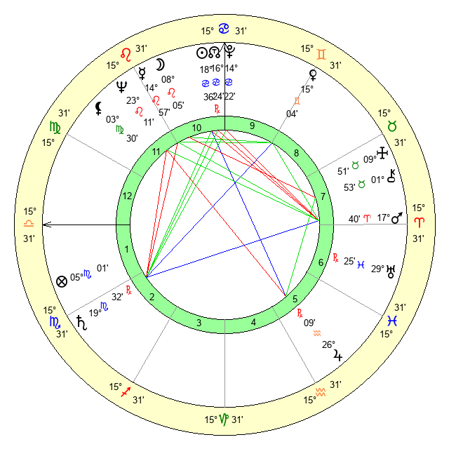 | Sun | 18 Cancer 37 | 19 Cancer 38 | 24 Libra 34 |