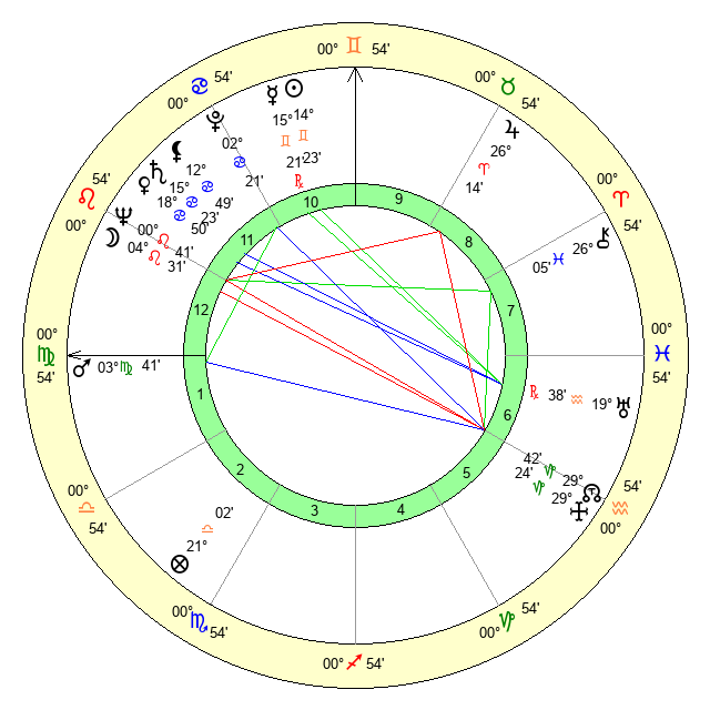 | Sun | 14 Gemini 24 | 15 Gemini 2 | 29 Virgo 4 |
