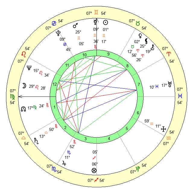 | Mars | 25 Gemini 5 | 16 Leo 35 | 0 Virgo 54 |