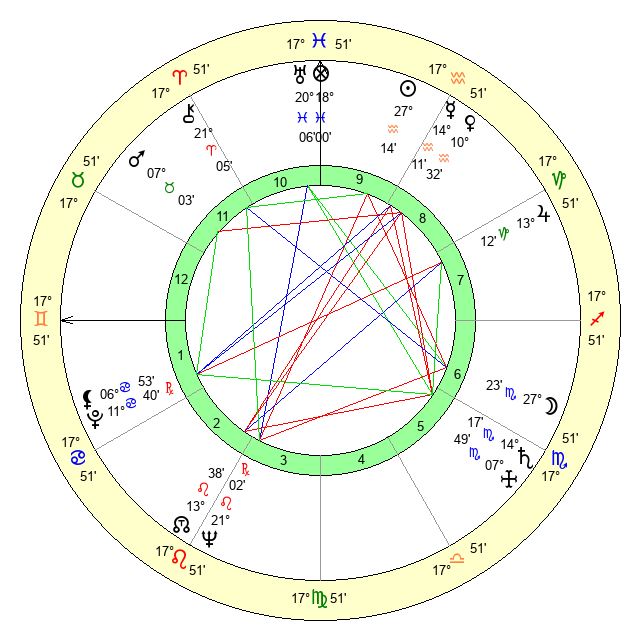 | Saturn | 14 Scorpio 50 | 19 Pisces 6 | 9 Scorpio 47 |