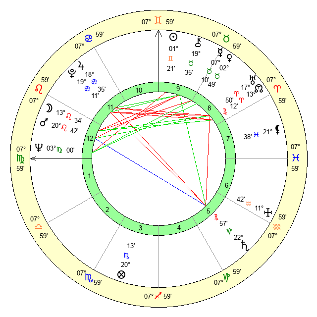 | Sun | 1 Gemini 21 | 2 Gemini 34 | 1 Virgo 16 |