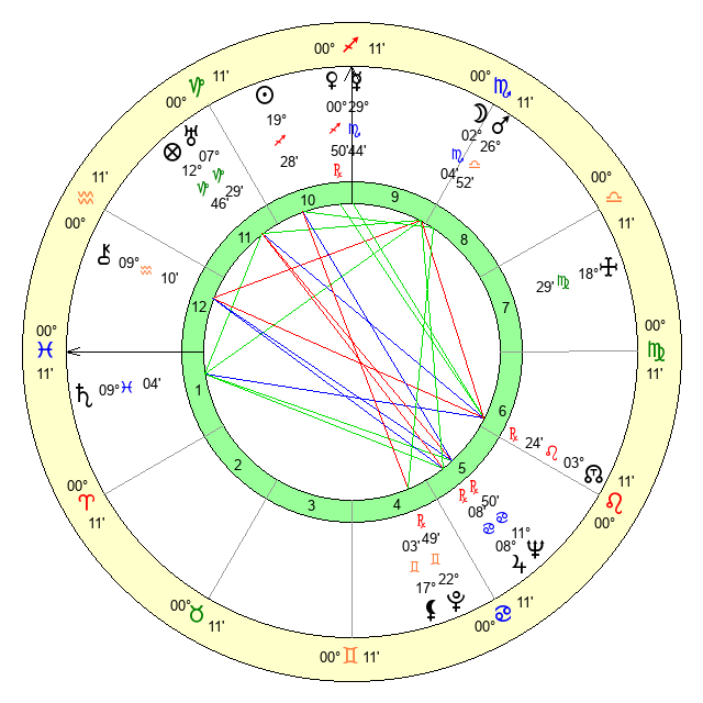 | Moon | 2 Scorpio 9 | 11 Taurus 6 | 6 Pisces 52 |