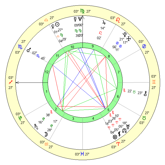 | Neptune | 6 Virgo 21 | 0 Aries 48 | 7 Virgo 56 |