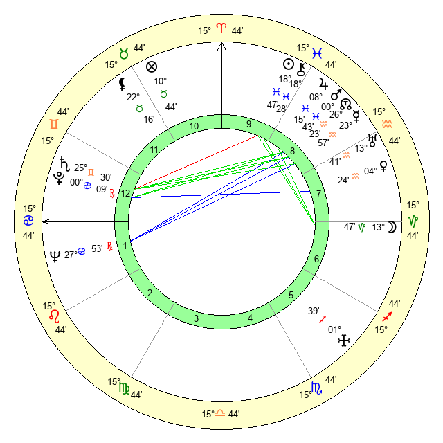 | Sun | 18 Pisces 48 | 20 Pisces 7 | 5 Cancer 39 |