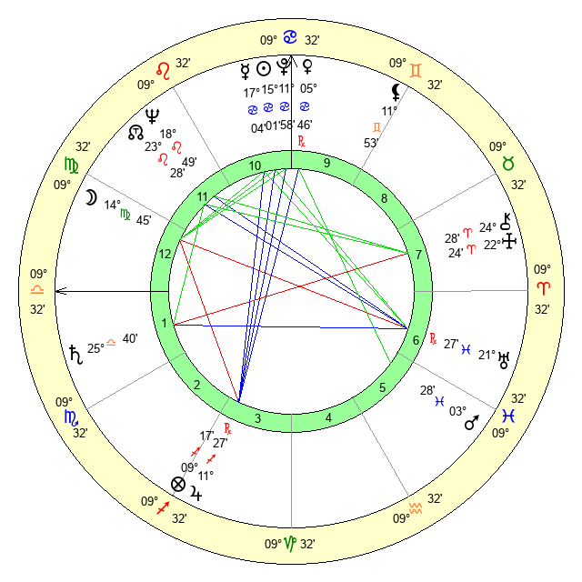 | Moon | 14 Virgo 47 | 6 Sagittarius 27 | 3 Gemini 53 |