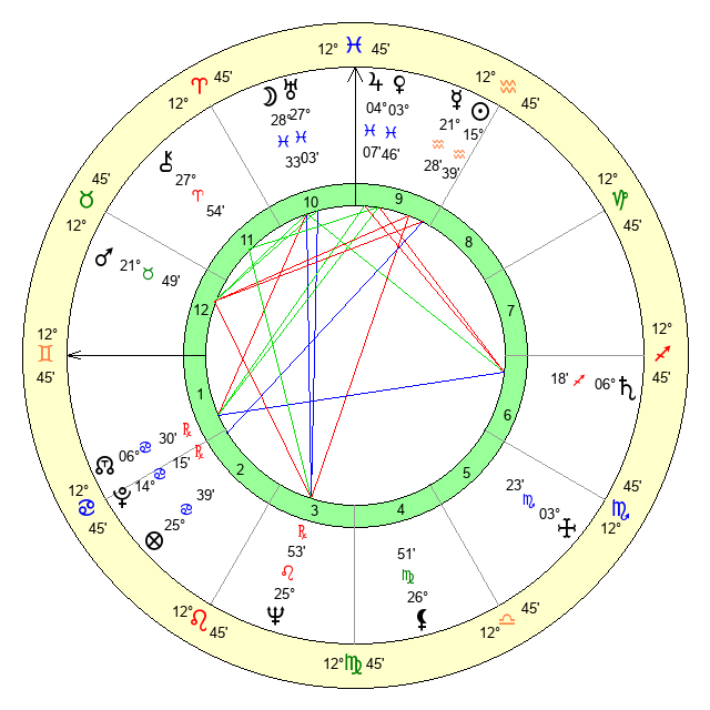 | Jupiter | 4 Pisces 4 | 11 Gemini 16 | 26 Pisces 15 |