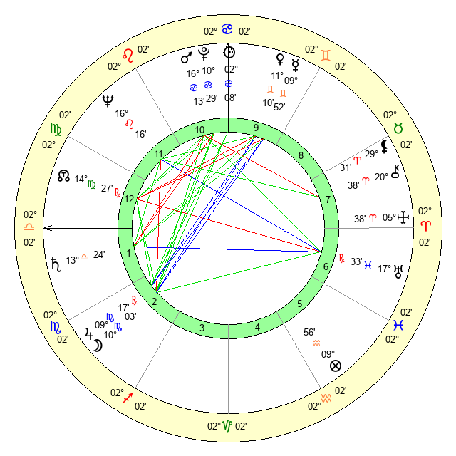 | Mars | 16 Cancer 13 | 4 Virgo 9 | 21 Virgo 25 |