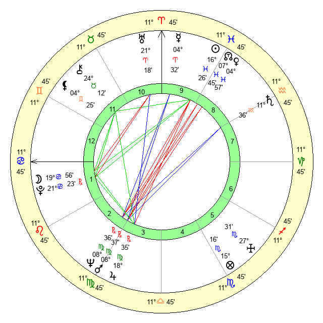 | Mars | 8 Virgo 36 | 17 Cancer 47 | 15 Virgo 27 |