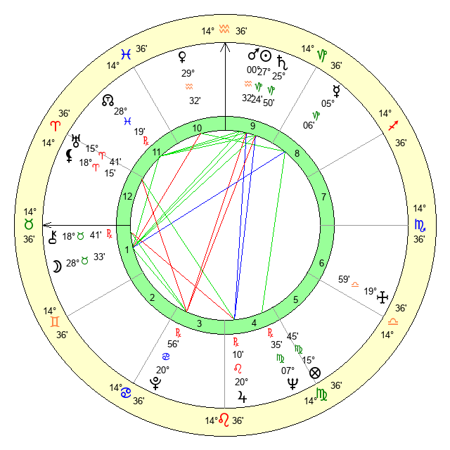 | Mars | 0 Aquarius 32 | 25 Cancer 11 | 13 Aries 28 |
