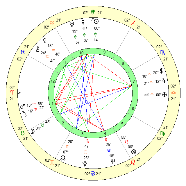 | Moon | 4 Taurus 57 | 28 Virgo 57 | 27 Cancer 24 |