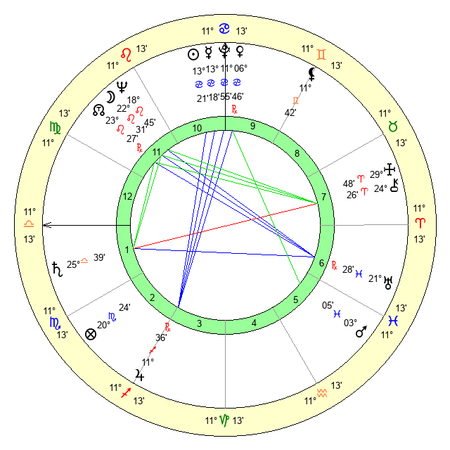 | Venus | 6 Cancer 46 | 1 Gemini 10 | 8 Virgo 1 |