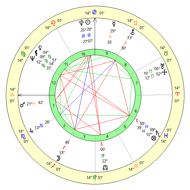 | Sun | 20 Cancer 7 | 21 Cancer 19 | 17 Libra 12 |