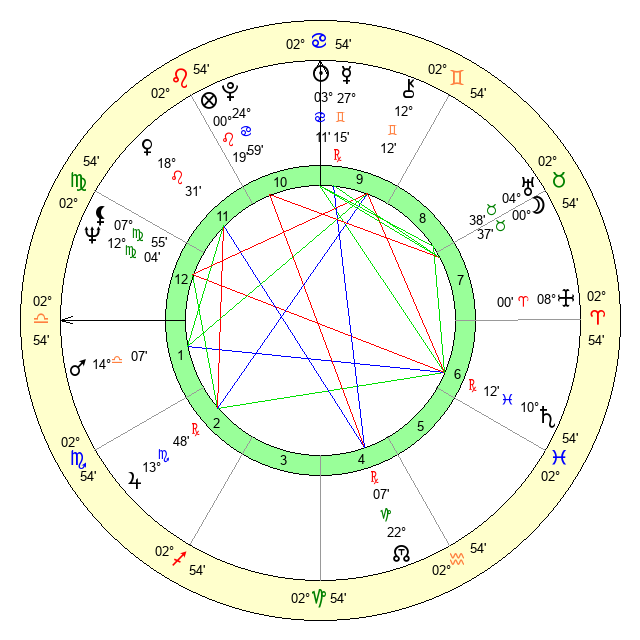 | Mars | 14 Libra 6 | 4 Virgo 44 | 4 Sagittarius 52 |