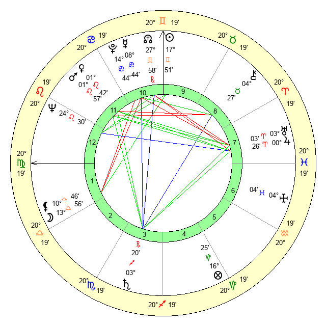 | Sun | 17 Gemini 51 | 19 Gemini 6 | 21 Virgo 51 |